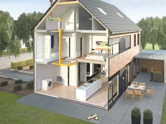 Balanced ventilation has a number of advantages when compared to mechanical ventilation. With balanced ventilation, the heat recovery system ensures that the heat already in your house is reused. So you save in heating costs. And the fresh air from outside is filtered before it enters your home, so you always have healthy air in the house. Unlike mechanical ventilation, balanced ventilation has no grills in the windows. So you won't suffer from cold or draughts in your home either.