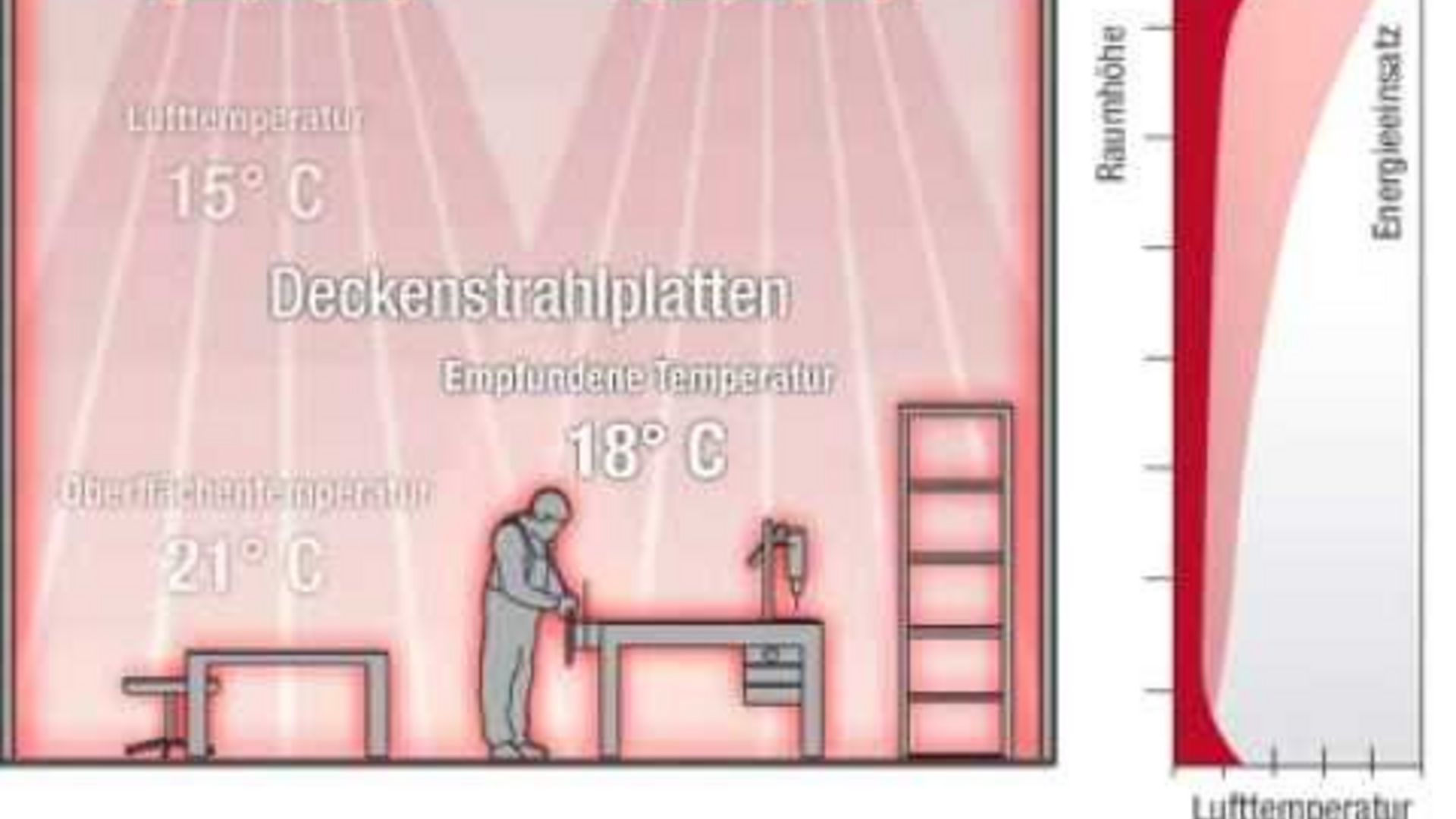 The energy costs essentially depend on the type of system and the energy source. The biggest cost factor is inefficient heat distribution in the room. Zehnder heating and cooling ceilings ensure efficient and extensive heat distribution in the room.